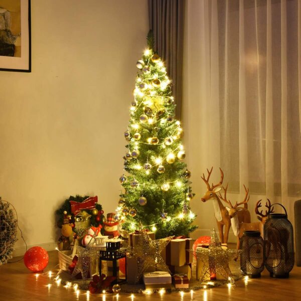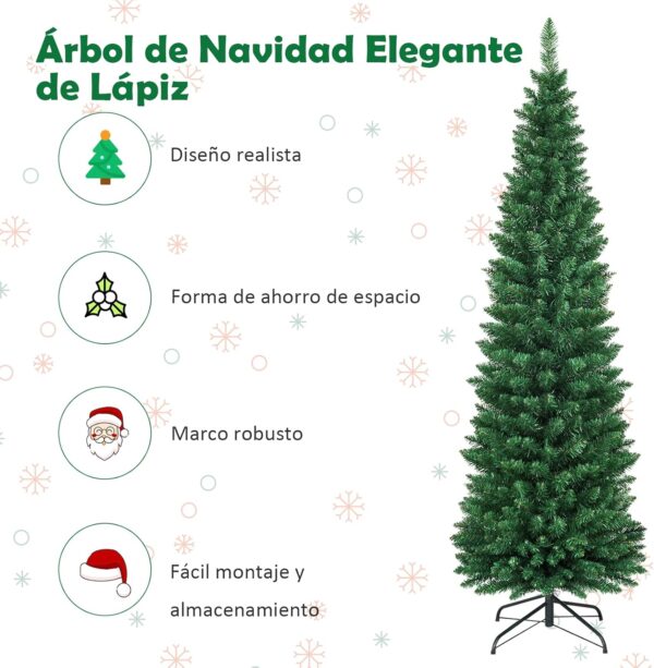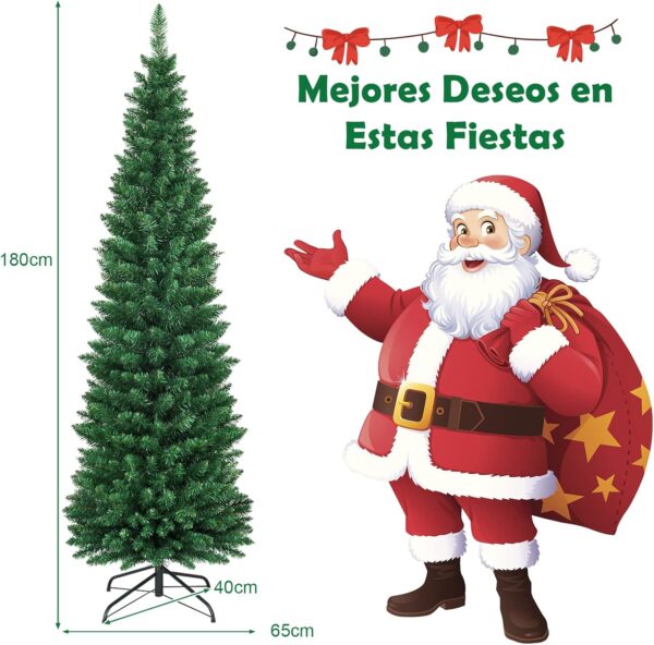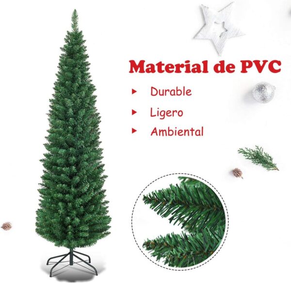 Árbol de Navidad Artificial Fina Estrecha, Árbol de Navidad Slim Artificial Abeto Fino de Hoja Espumillón 150cm 180cm 210cm Arboles con Soporte Metálico, Arbol Economico, Arbol Alta, Arbol Navidad Resistente con Hojas PVC, Verde Oscuro